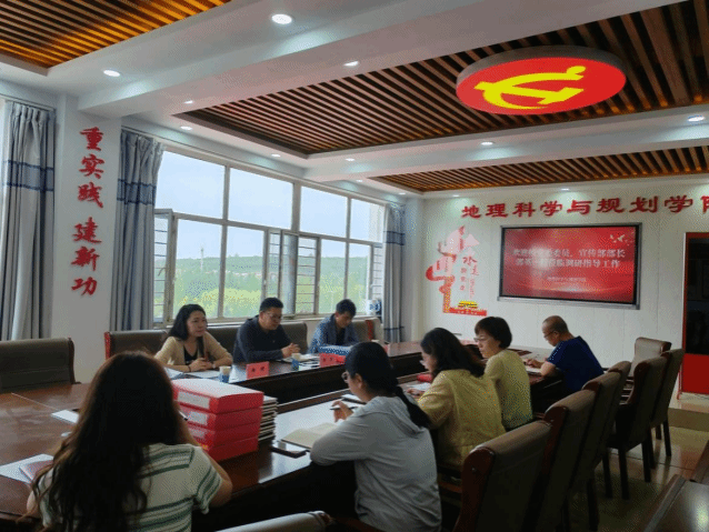 7月3日上午,校党委委员、宣传部部长郭英,副部长田博及科技处副处长尚妤一行3人深入地理科学与规划学院调研指导党纪学习教育开展情况。地理科学与规划学院党总支书记刘晓霞、副书记张炜及师生党支部书记参加会议。