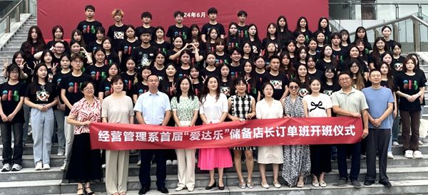 为全面深化产教融合,推动校企合作迈上新台阶,6月21日上午,学院经营管理系与四川爱达乐信德食品销售有限责任公司联合组建的首届“爱达乐”储备店长订单班开班仪式在第一学术报告厅举行。学院副院长康璐,四川爱达乐信德食品销售有限责任公司人力资源总监兰杨及其他企业领导,经营管理系、旅游管理系和经济贸易系的负责人,教师代表及订单班全体学生参加开班仪式。开班仪式由经营管理系主任王琦主持。康璐指出,要以此次订单班联合培养为契机,...