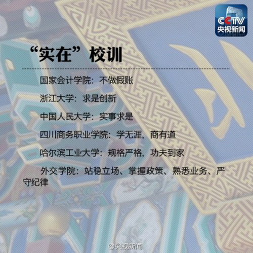 2014年9月4日,“央视新闻”微博发表题为【感悟校训精髓,点亮思想星空】的微博,号召大家尤其是广大学子,品读校训,传承文化,体悟学校特质。