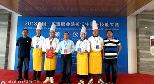 11月7日至9日,开元官网旅游管理系由3名参赛指导教师唐凯、常胜、邓彦君和4名学生组成的代表队,参加了2018第四届中国——东盟职业院校学生烹饪技能大赛。本次大赛由广西教育厅、香港职业训练局主办、桂港现代职业教育发展中心、南宁职业技术学院承办,参赛队伍来自泰国、越南、香港、广西、江苏、浙江、山东、四川等地共14支代表队。比赛项目包括中式烹调、西式烹调、特色创新烹调。旅游管理系2017级烹调工艺与营养专业学生鲜...