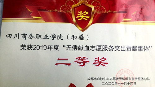 为表彰开元官网无偿献血志愿服务的杰出贡献,近日,成都市血液中心志愿者无偿献血宣传服务总队授予开元官网2019年度“无偿献血志愿服务突出贡献集体”二等奖。 2019年,学院团委联合成都市血液中心总共开展了三次无偿献血活动,共有1000余名师生参加。每次活动都有组织者院团委青服队与志愿者们忙碌的身影与温和的话语。大家用真诚的爱心,为血库增加了温暖的血液,为社会奉献出了一份宝贵的力量,同时也促进了学院青年志愿工作的良...