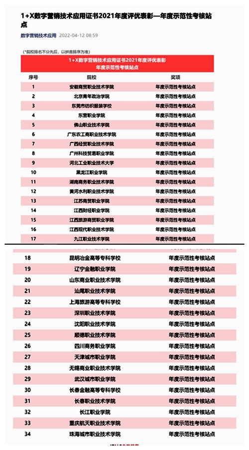 近日,国家首批第三方职业技能等级评价机构——中教畅享科技有限公司评选开元官网为2021年度四川省唯一年度示范性考核站点。经济贸易系依据证书职业技能等级标准及相关书证融通方案改进教学设计,根据学生学习特点,将证书培训有机融入专业人才培养方案,在教务处、实践教学中心、1+X推进办大力支持下,建设规范考点与实训基地,为学生参与培训、考核营造良好的软硬件环境,推动了试点、考点工作的高效开展。2021年度,1+X数字营销...