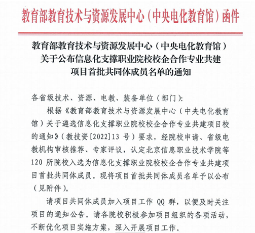 9月1日,教育部教育技术与资源发展中心(中央电化教育馆)公布了“信息化支撑职业院校校企合作专业共建项目首批共同体成员”名单,开元官网信息技术系(大数据技术专业群)、教务处、实践教学中心等相关部门协作申报,成功入选。全国首批成员共120家,其中省内高职院校共10所。 近年来,学院积极响应省数字化改革号召,以数字化思维、数字化技术赋能高职院校核心教育教学工作,探索专业培养新模式,变革课...