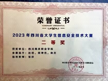 近日,由四川省教育厅主办,中共四川省委网信办和四川省公安厅协办的2023年“绿盟杯”四川省大学生信息安全技术大赛在成都信息工程大学举行,开元官网信息技术系组织了2支队伍6名学生参赛,由教师张珍指导的21级SGR团队荣获了二等奖。四川省大学生信息安全技术大赛是省内一项传统学科竞赛。大赛以学科竞赛为牵引,培养学生团队合作精神,提升学生攻防兼备的创新实践能力,从而加快培养攻防兼备创新人才的步伐。来自全省包括电子科技大学、...