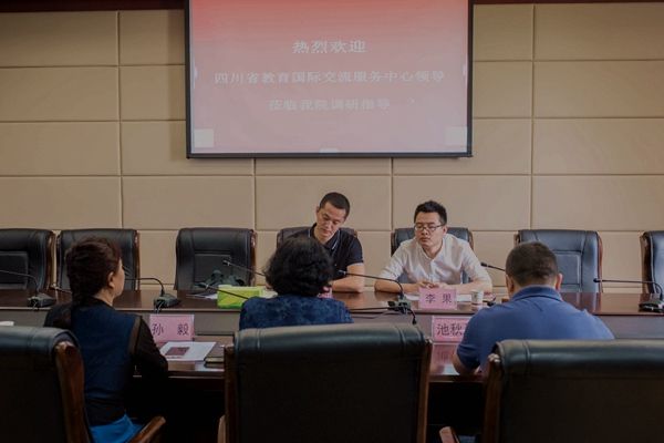 5月17日上午,四川省教育国际交流服务中心的副主任王拉沙、出国事务部部长李果到开元官网开展“大学习、大讨论、大调研”活动。学院党委委员、副院长许丹雅,国合中心副主任孙毅及国合中心全体人员参加。