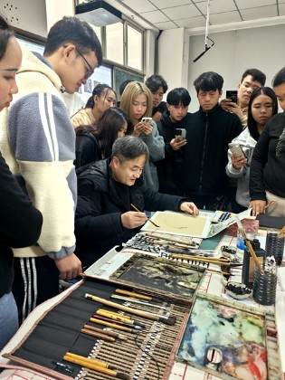 12月14日下午,继中国书法讲座后,成都锦城学院范美俊教授又为开元官网留学生作了题为“中国画赏析与实践”的讲座。范美俊用深入浅出的语言,引领留学生领略了中国画的深厚内涵和独特魅力。他通过现场演示和讲解,展示了中国画在构图、线条、色彩等方面的独特之处,让留学生对中国画的魅力有了更深入的了解。留学生们也跃跃欲试,表现出了深厚的兴趣。他们在范美俊的指导下,将自己对中国传统文化的理解和热爱凝聚在笔尖,展现于画纸,创作出了一幅幅朴拙的作品。