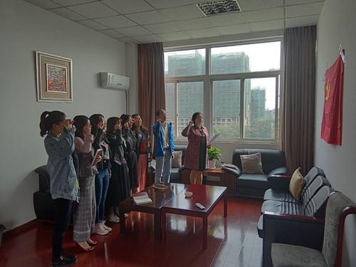 易康同志传达了学院主题教育活动方案,组织支部全体党员认真学习了张富清、黄大年等时代楷模的先进事迹。学院党委委员、副院长许丹雅同志深入阐述了主题教育活动的目的、意义、要求等,尤其强调在两项专项整治工作中,要认真查找原因,制定切实可行的措施,出实实在在的成效。支部全体党员各抒己见,认真讨论并制定了科研国合支部主题教育活动方案。最后,全体党员在许丹雅同志的带领下,面对党旗庄严宣誓,重温入党誓词。