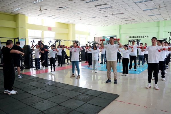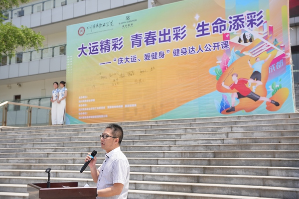 下午14时,另一场别有特色的健身达人公开课也紧锣密鼓开课。休闲体育专业2017级毕业、四川省健身健美锦标赛冠军获得者、西南五省健身健美大赛冠军及法拉利中华区健身健美第一名获得者蒋鑫回到熟悉的校园,带领热爱运动,欢庆大运的师生们,以“大运精彩 青春出彩 生命添彩”的口号开展了健身健美公开课。开课现场,学院党委副书记张军致辞:体育运动不仅仅是社会发展和人类文明进步的重要标志,还是增强体魄、锻炼意志、释放压力、交流情感的重要载体,希望休闲体育专业以此次公开课为契机,提高师生专业技能水平,不断提高人才培养质量,最终形成品牌和特色,立足成都,面向全省展示商院休闲体育专业师生风采。