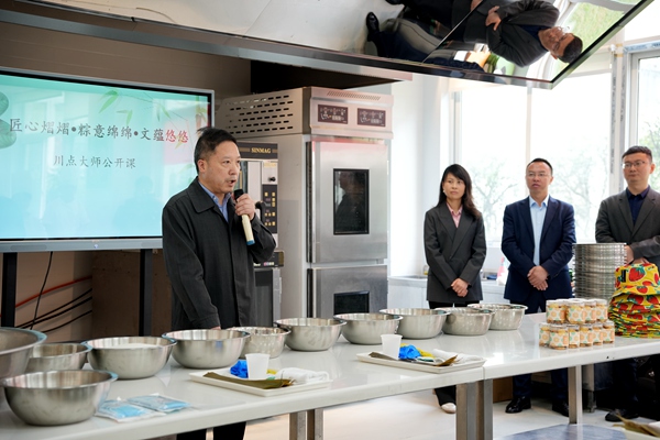 26日上午,以“传承中华传统美食文化,弘扬大国工匠精神”为主题的“匠心熠熠 粽意绵绵 文蕴悠悠”——川点大师公开课开课,四川省范忠西式面点技能大师工作室的领衔人范忠亲临课堂,为学院师生做粽子的制作与创新教学示范。学院党委委员、副院长官培生、四川爱达乐食品有限责任公司人才发展经理冯惠以及学院相关职能部门负责人出席了本次公开课。