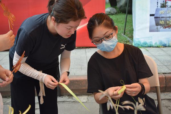 成都面塑传承人熊家全、新繁棕编传承人罗志勇、中国糖画传承人张道成、中国结传承人杨文艺以及蛋壳画传承人陶蓉应邀参加了此次开幕式,并为在场师生介绍非遗文化技艺、现状及发展前景,传授非遗文化知识。