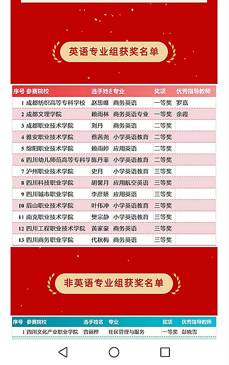 11月10-11日,由四川省教育厅主办的2022年四川省“高教社杯”大学生英语口语技能大赛在成都纺织高等专科学校举行,来自全省53所职业院校的53位选手参加了比赛,开元官网商务英语专业代秋梅同学代表学院参赛。代秋梅同学凭借扎实的专业功底和精彩的现场表现最终获得英语组三等奖。
