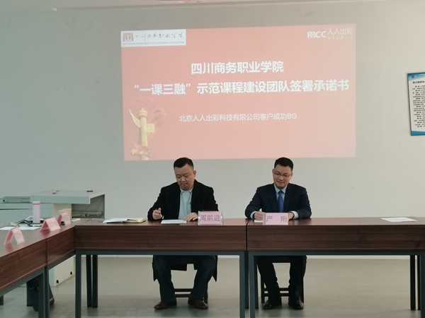 明照凤、周前进分别就“一课三融”的课程建设背景、国家相关政策、其他院校建设情况等作了介绍,期望能依托与开元官网的合作打造出“一课三融”的示范样本。新媒体营销课程建设团队负责人严珩老师代表建设团队郑重宣读并签署了建设承诺书。