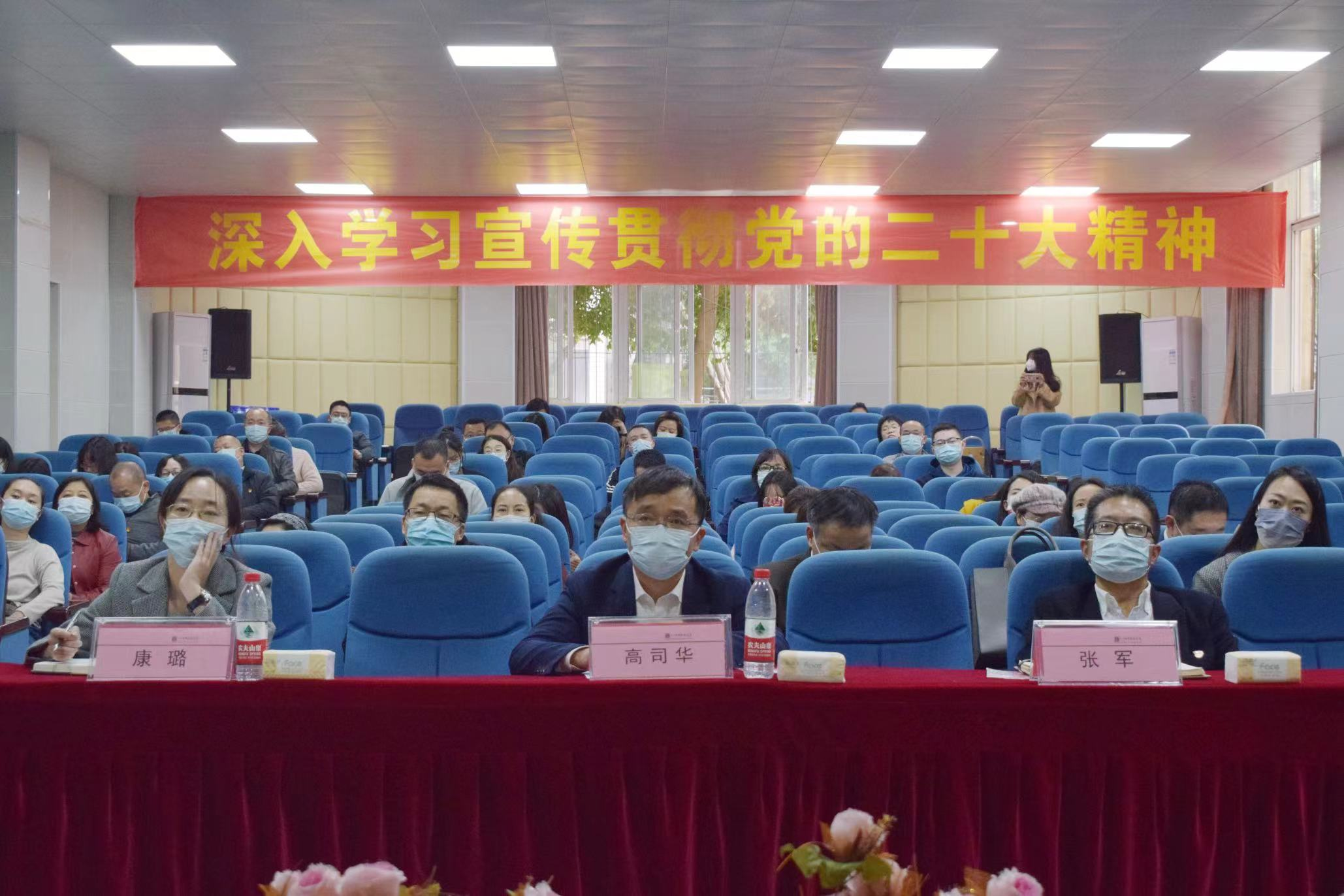 为深入学习宣传贯彻党的二十大精神,11月8日,四川商务职业学院特邀四川省委宣讲团成员、四川农业大学马克思主义学院党委副书记、副教授、硕士生导师颜怀坤来开元官网作宣讲报告。报告会分别在和盛校区商务信息交流中心主会场、文家校区学术报告厅腾讯会议直播会场举行。全体党员和科级及以上非党员干部350余人参加。