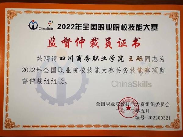全国职业院校技能大赛高职组赛项今年首场线下竞赛——“关务技能”赛项于2022年11月7日至8日在厦门城市职业学院举办,开元官网经营管理系物流教研室王砾副教授受聘担任2022年全国职业院校技能大赛(高职组)关务赛项监督仲裁组组长。