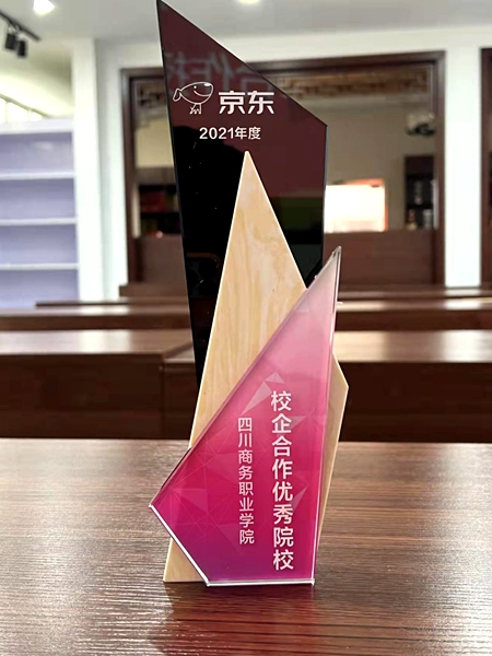 12月29日上午,京东零售人力资源部经理刘蛟为开元官网颁发了2021年度优秀校企合作院校奖杯。