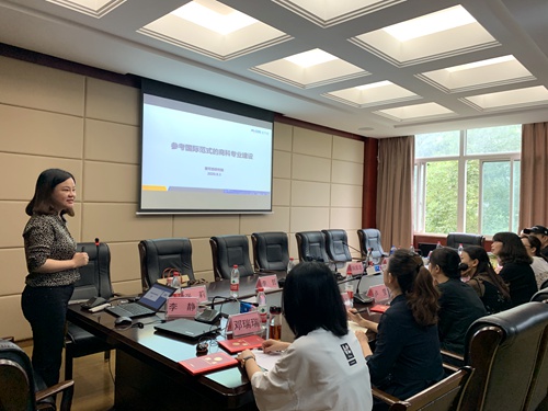 马妍作了题为《参考国际范式的商科专业建设》的报告分享。报告详细介绍了商科国际范式专业建设的核心理念、建设过程,并对开元官网当前专业建设的现状进行了详细的分析。国际范式专业建设核心小组组长张莉随后发言。