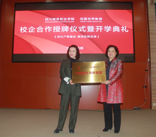 10月20日,四川商务职业学院——完美世界教育校企合作授牌仪式暨开学典礼在学院商务交流中心举行。省商务厅一级巡视员刘祥超、完美世界控股集团高级副总裁兼发言人、完美世界教育董事长王雨蕴、学院党委书记唐柯、副院长许丹雅、省商务厅人事教育处副处长沈文华、完美世界教育副总裁杨凯、西南区经理李伟博以及学院相关人员参加,KY开元集团官网副院长向宏志主持会议。