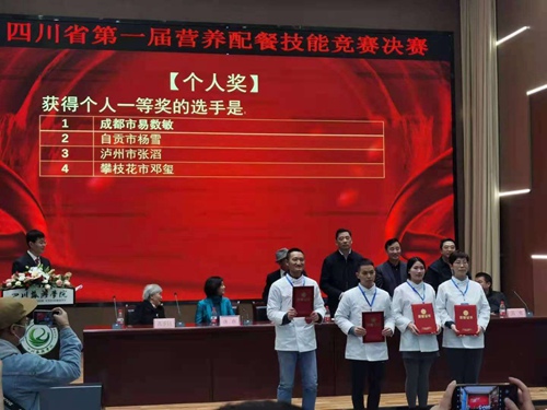 11月8日,在“成都市第一届营养配餐技能竞赛”中,易树敏、李根生、林硕老师代表温江区卫健委和商务局,力挫群雄斩获“团体一等奖”,易树敏、李根生分获“个人一等奖”。两位老师成功晋级代表成都市参加四川省第一届营养配餐技能竞赛,与来自四川省各市(州)60名选手同场竞技。他们不畏强敌,发扬勇敢拼搏的精神,凭借高超的烹饪技能,最终荣获全省团体一等奖,易树敏获得个人一等奖,并且获得了四川省“五一奖章”、“技术能手”的申报资格,李根生荣获三等奖。