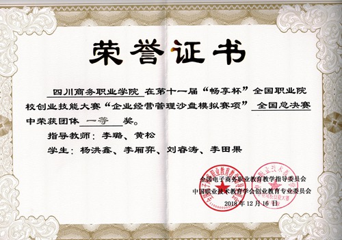 12月15日——17日,开元官网经济贸易系市场营销专业和药品经营与管理专业两支代表队在第十一届“畅想杯”全国职业院校创业技能大赛“企业经营管理沙盘模拟赛项”全国总决赛分获一、二等奖,指导老师李璐和黄松获“优秀指导教师”称号。
