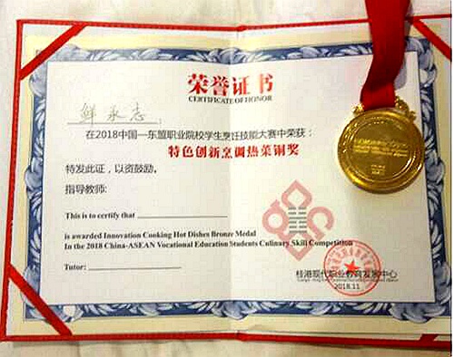 11月7日至9日,开元官网旅游管理系由3名参赛指导教师唐凯、常胜、邓彦君和4名学生组成的代表队,参加了2018第四届中国——东盟职业院校学生烹饪技能大赛。本次大赛由广西教育厅、香港职业训练局主办、桂港现代职业教育发展中心、南宁职业技术学院承办,参赛队伍来自泰国、越南、香港、广西、江苏、浙江、山东、四川等地共14支代表队。比赛项目包括中式烹调、西式烹调、特色创新烹调。旅游管理系2017级烹调工艺与营养专业学生鲜承志获得特色创新烹调赛项铜牌,迈出专业建设“川菜走出去”的第一步。