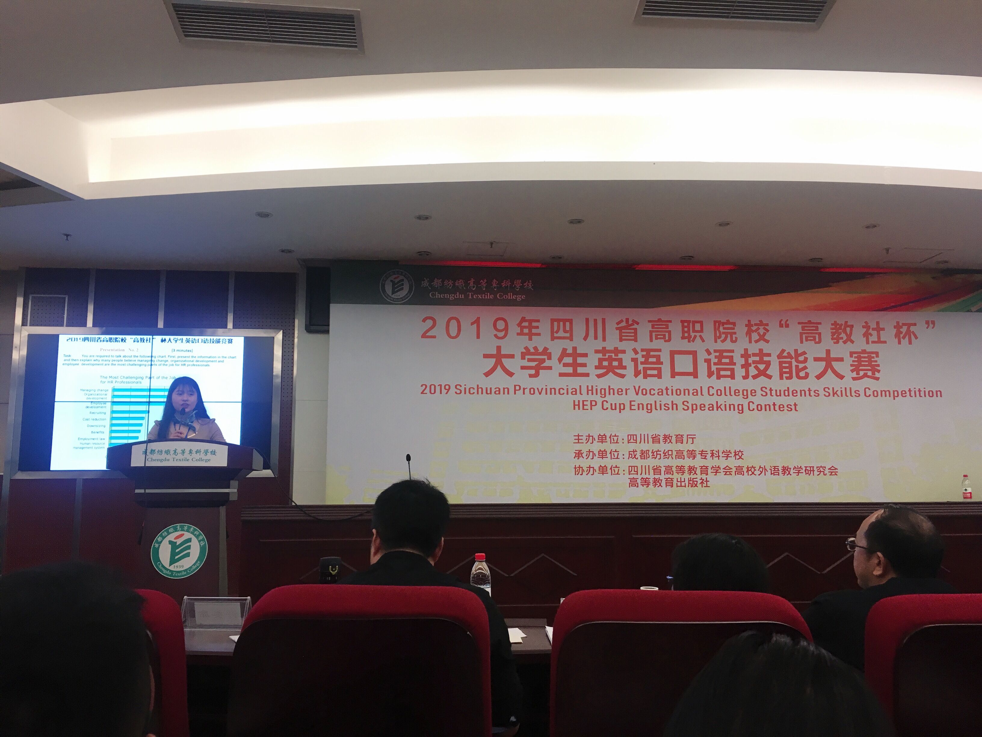 4月4日,2019年四川省高职院校“高教社杯”大学生英语口语技能大赛在成都纺织高等专科学校隆重举行。开元官网经贸系商务英语专业学生斩获专业组三等奖。