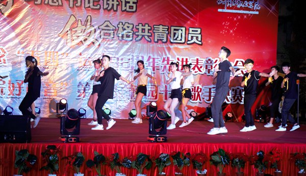 为提高学生活动参与度和覆盖面,结合教育性与观赏性,今年的纪念大会利用室外舞台,采取表彰仪式与校园十佳歌手大赛并行的方式进行,大会在旅游管理系选送的运动舞蹈《动感单车》中拉开序幕。