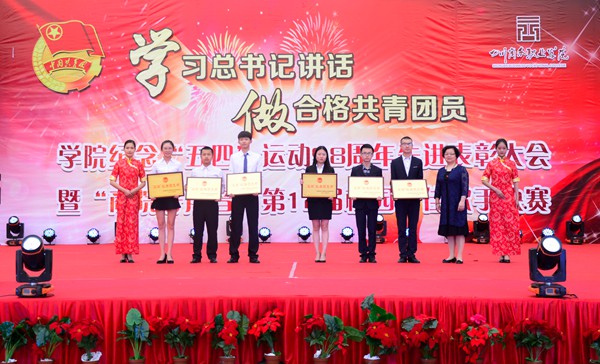 随后学院纪委书记、文家校区校长官培生宣读了学院共青团表彰决定。学院授予经济贸易系团总支、会计系团总支“五四红旗团总支”称号,学院党委书记舒维霖为他们颁奖;授予2015级酒店管理1班等17个团支部“五四红旗团支部”称号,学院副院长许丹雅为受表彰集体代表颁奖;授予黄远洪等10名同学“十佳团员标兵”称号、授予李洁慧等322名同学“优秀共青团干部”称号、授予康杰等396名同学“优秀共青团员”称号,学院副院长向宏志为优秀个人代表颁奖;授予张卡、唐鹂、王钦、段瑶4名同志“优秀专职团干部”称号,纪委书记、文家校区校长官培生为他们颁奖。