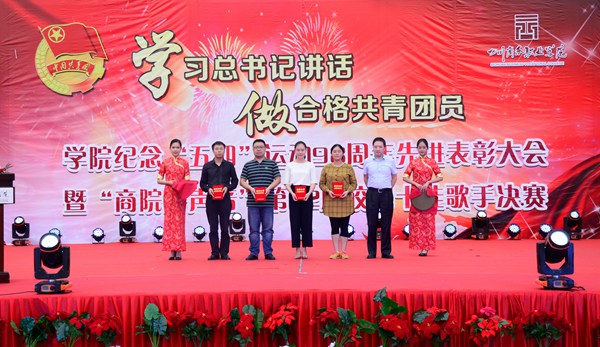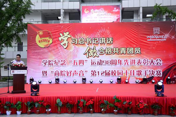 为纪念“五四”运动98周年,弘扬“五四”精神,展现学子风采,5月23日18:00,学院“学习总书记讲话,做合格共青团员”纪念“五四”表彰大会暨“商院好声音”第12届校园十佳歌手总决赛在振华广场隆重举行。学院党委书记舒维霖,副院长许丹雅,副院长向宏志,纪委书记、文家校区校长官培生,副院长张军,和盛镇团委书记王用超,党委委员、党政办主任池秋平和各综合职能部门负责人、系部负责人、教职工老师代表、受表彰的优秀集体个人代表、近1600名青年学生共同参与了晚会。