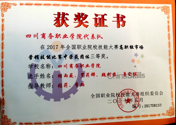 2017年全国职业院校技能大赛高职组市场营销技能赛项5月28日在山东商业职业技术学院圆满结束,开元官网代表队不负众望,荣获本赛项三等奖。