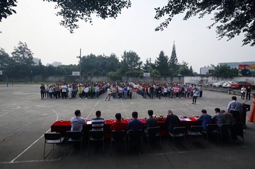 中午12点30,在庄严的国歌声中,文家校区篮球场上200余名师生齐聚一堂。学院党委书记舒维霖,中国联通青羊分公司集团经理卢黎明,学院党委委员、纪委书记、文家校区校长官培生,学院工会副主席丁德君,后勤处长、文家校区综合办主任彭枫、人文社科部副主任王伟,后勤处党总支副书记陈根元,以及相关系部负责人和全体辅导员老师们出席了开幕式。