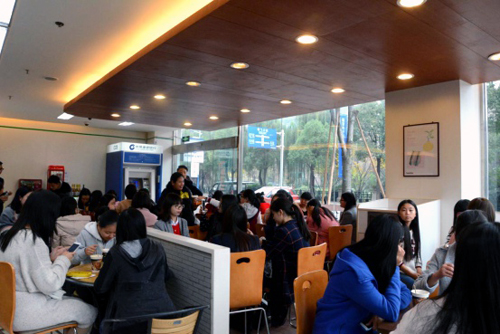 首先,在青羊工作总部园区的全家便利店,李健鹏总监亲自向同学们讲解了便利店定位、选址、企业文化等方面的内容。营运课长梁铮、商品课长杨亚霖及卖场工作人员为同学们介绍卖场布局、商品种类搭配、陈列技巧、商品价格设定、自营商品范围、鲜食产品定位等卖场实践操作的内容。同学们认真听讲并作好笔记,积极踊跃地提问,互动交流效果良好。