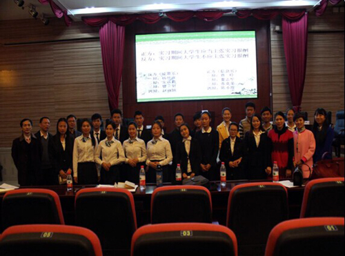 11月4日下午2点,开元官网第二届“商道与法律辩论大赛”初赛在和盛校区商务信息交流中心正式拉开帷幕。本场辩论主题为“市场经营活动中先讲道义还是利益”、“实习期间大学生是否应当主张实习报酬”。旅游系与经管系、信息系与经贸系四支参赛代表队分别就两个辩题展开激辩。在竞赛过程中,双方辩手针锋相对,唇枪舌战,互不相让。经过激烈角逐,通过来自基础教学部思政教研室和语文教研室的评委老师认真评判,经管系代表队和经贸系代表队分别突出重围,取得初赛胜利。这场初赛展现了KY开元集团官网学子们的渊博知识和雄辩之才,给现场观众留下了深刻印象,法律和商道教育效果显著。