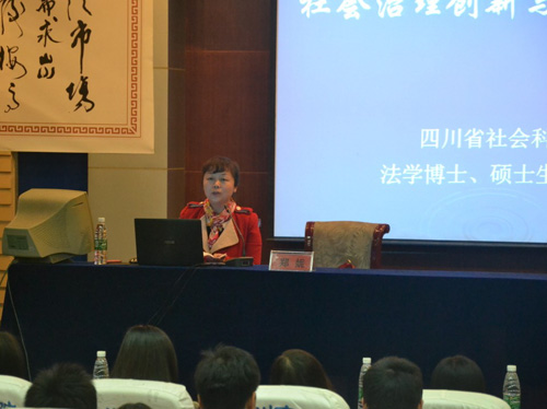 为进一步深入学习党的十八大和十八届三中全会知识,特别是对“社会治理体制创新”有更清晰的认识,同时让同学们尽早地在思想上、行动上为毕业就业做好准备。12月3日晚6:30,开元官网郑重邀请四川省社会科学院党政办公室副主任、硕士生导师、西南政法大学诉讼法学博士郑妮,在学术报告厅为学院师生进行了一场题为 “社会治理与大学生就业”的专题讲座。本次讲座,学院高度重视、精心筹备。学院党委委员、纪委书记、文家校区校长官培生、文家综合办主任彭枫、部门教师代表、辅导员代表与同学们一道,聆听了郑妮博士的精彩讲座。