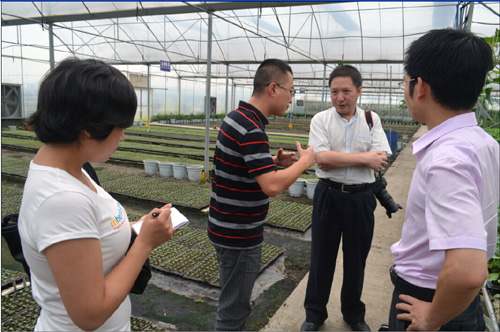 7月11日上午,服务团一行来到眉山市东坡区的蔬菜种植基地。该蔬菜种植基地由四川农业大学园林系毕业的回乡创业大学生向峰和眉山市东坡区修文镇共同创立,采纳了现代农业蔬菜科技产业园区建设方案,采取无公害、绿色安全种植方式,用科技维护“舌尖上的安全”,从而赢得了市场,其公司种植的蔬菜远销陕西、重庆等地。在这里,服务团感受到科学发展观带给农村产业化的新变化,学习了大学生自主创业的成功经验,增加了同学了就业创业的热情。