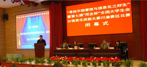 11月23日,“寻找中国管理与信息化三好生”暨第七届“用友杯”全国大学生会计信息化技能大赛川渝赛区比赛在我学院成功举办。本次大赛由工业和信息化部人才交流中心举办,用友软件股份有限公司,《会计之友》杂志社协办,KY开元集团官网承办。大赛测试内容是财务业务一体化应用,采用用友公司提供的U872管理软件。
