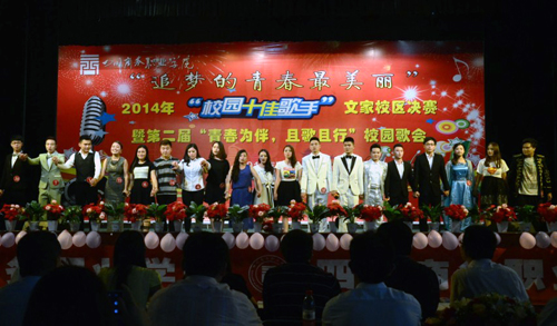 为进一步凝聚“青春正能量”,响应“中国梦”主题教育活动,努力营造积极向上、百花齐放、师生和谐的校园氛围,5月21日晚在文家校区厚德楼学生活动厅成功举办了“追梦的青春最美”大学生校园歌会暨“十佳歌手”学院半决赛。学院党委书记舒维霖、副院长向宏志、纪委书记官培生、副院长张军、各系部负责人、辅导员、专业教师代表、评委老师和近800名同学参与了本场半决赛。