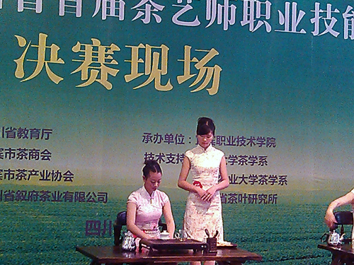 5月11日,由四川省教育厅主办,宜宾职业技术职业学院承办的“叙府龙芽杯”首届四川省高职高专茶艺师技能大赛在四川省叙府茶业有限公司金秋湖科技园区举行。开元官网旅游管理系黄进老师指导的四位12级酒店管理专业同学代表学院参加了本次大赛,取得了团体优秀奖和个人三等奖的良好成绩。