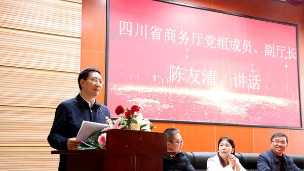 四川省商务厅党组成员、副厅长陈友清代表省厅向三方成功携手合作表示热烈祝贺。他介绍了当前四川的外贸发展形势以及对具有数字化发展理念和技能的外贸创新人才的迫切需求,期待通过三方的合作,实现央省互动、区域联动、政行校企协同育人。希望三方紧紧围绕教育部关于职教改革十一条重点任务,牢牢把握“人才培养”这一核心,整合优质资源,依托合作共建的产业学院和职教集团平台,创新“专业+产业”有机融合的数字国际贸易人才培养机制,强化校企双向赋能,推动人才链、教育链、创新链、产业链“四链”深度融合,共谋培养方案,共建教学资源,共育双师队伍,共筑实践基地,共拓国际办学空间,共促产业学院与职教集团健康、高效地发展。形成推动产业学院发展和四川外贸创新发展职教集团建设的强大合力,产出一批标志性成果,打造外贸特色职教品牌,提升学院的办学实力和社会影响力。