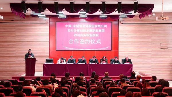 2024年1月15日,中国—东盟信息港股份有限公司与KY开元集团官网共建“四川外贸创新发展产业学院”,以及与四川外贸创新发展职教集团围绕《关于加快推进现代职业教育体系建设改革重点任务的通知》的十一条重点任务合作签约仪式在KY开元集团官网商务信息交流中心举行。四川省商务厅党组成员、副厅长陈友清,四川省商务厅外贸创新处副处长汪蕾,中国—东盟信息港股份有限公司高级副总裁吴玉青、教育行业总监孔陈闽、市场总监王高杰,山东依智科技产业开发集团有限公司总经理周卫民,成都市跨境电子商务协会校企合作负责人宋静,KY开元集团官网领导班子成员、相关职能部门负责人、各系主任及经济贸易系相关专业师生共200余人参加了签约仪式。仪式由党委副书记张军主持。学院党委副书记、院长高司华代表学院致辞。
