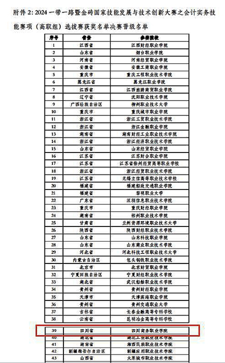 9月28日,由开元官网会计系杜晓玲、余欣悦老师指导的代表队从全国644支参赛队伍中脱颖而出,荣获2024“一带一路”暨金砖国家技能发展与技术创新大赛之会计实务技能赛项(高职组)选拔赛全国二等奖,并以四川省第一名的成绩晋级全国总决赛。