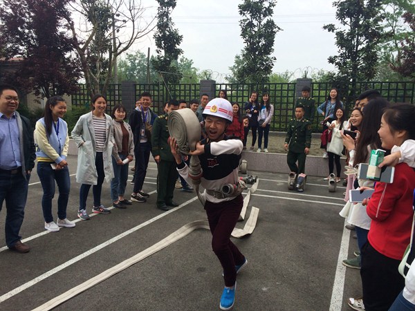 此次“军地共建 共筑消防安全”活动分三个环节:由消防大队政委以“全民消防 生命至上”为主题进行了演讲,以真实、鲜活的案例讲述了消防的重要性;参观了消防队的各种消防车辆和灭火、救援设备,学习灭火器使用的相关知识。在消防队员的指导下,同学们亲身尝试了使用各种消防设备和高楼速降求生训练;最后,院团委篮球队和消防官兵进行篮球友谊赛。