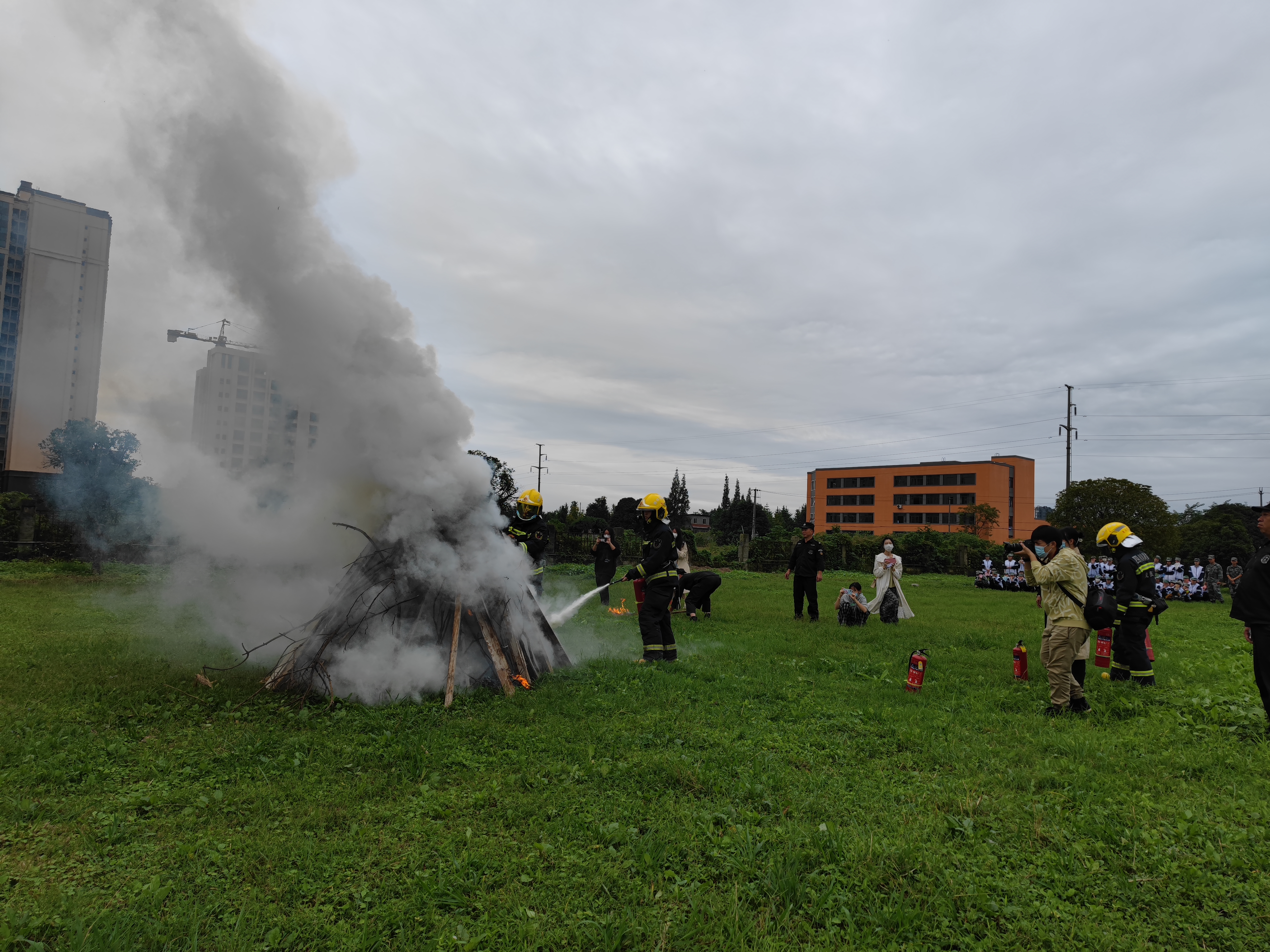 此次演练活动包括三个环节应急疏散演练高层救援演练和消防器材正确使用环节在应急疏散演练中学生公寓释放了大量浓烟能见度较低,模拟了情况危急的火灾现场。在老师们的带领下,全体学生用湿毛巾、手帕等捂住口鼻,按照疏散演练方案设定的逃生路线,迅速而有序地到达指定安全位置。