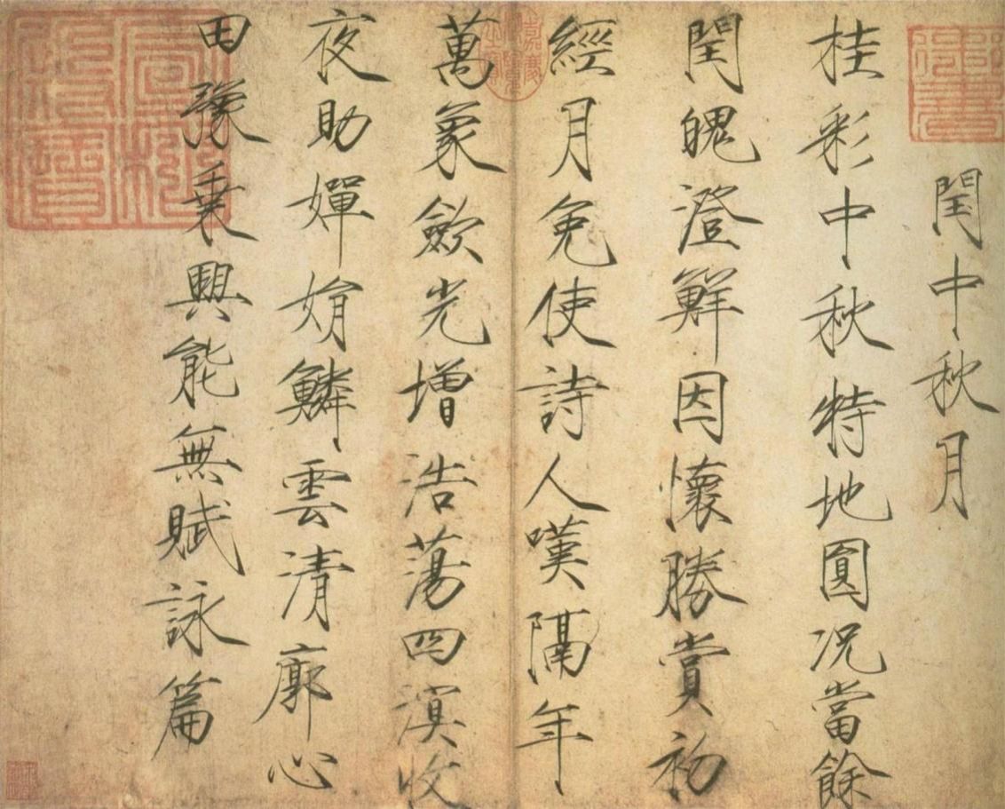 《闰中秋月帖》,宋徽宗赵佶书于宋大观四年(1110年)。凡七行,共六十字。帖文为七言律诗一首,乃中秋赏月即兴之作,现藏于北京故宫博物院。