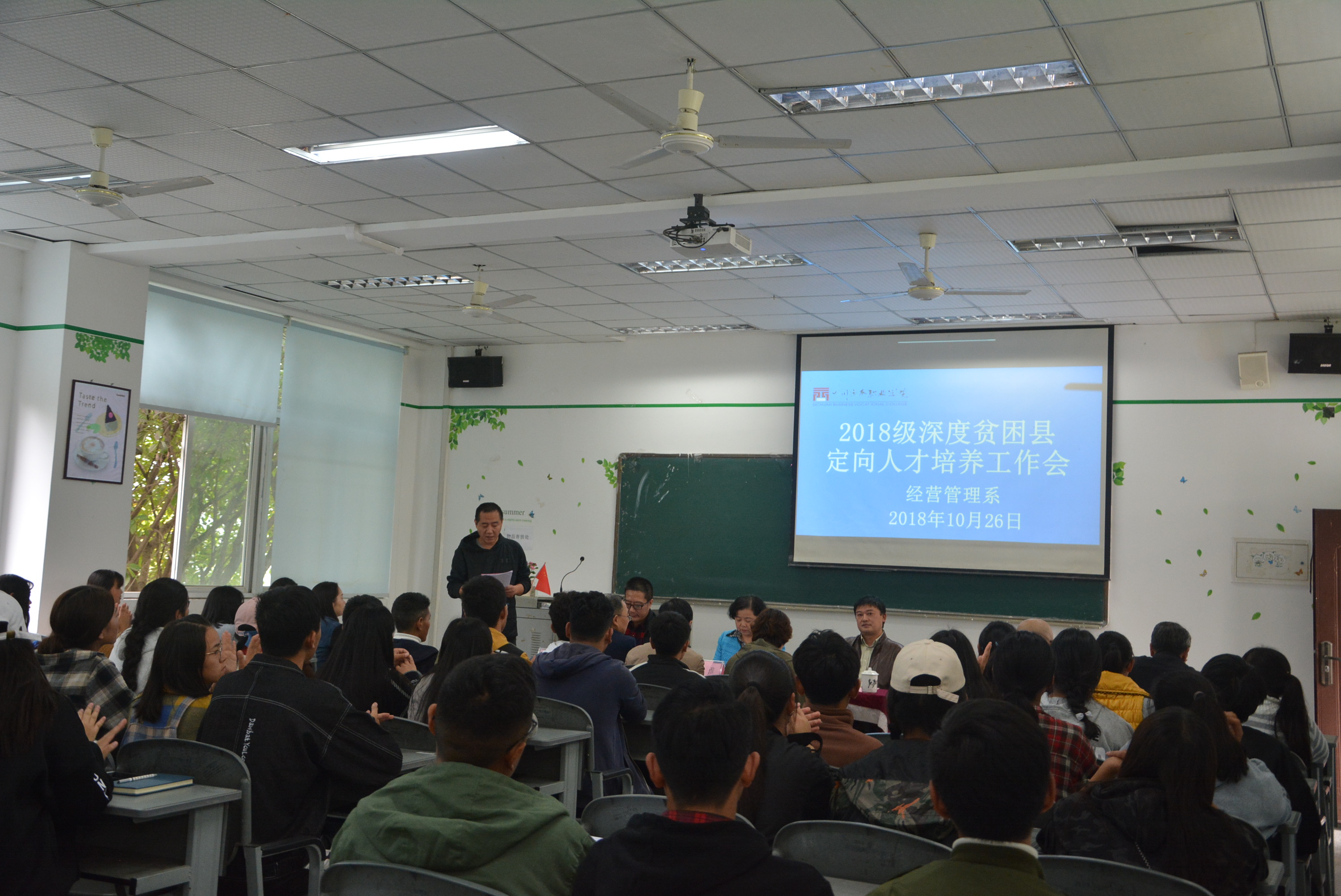 经营管理系2018级深度贫困县定向人才培养工作会隆重召开 2018年10月26日星期五下午2:30,经营管理系2018级深度贫困县定向人才培养工作会在1教202室隆重召开。出席本次的会议有学院领导有许丹雅副院长、向宏志副院长、...
