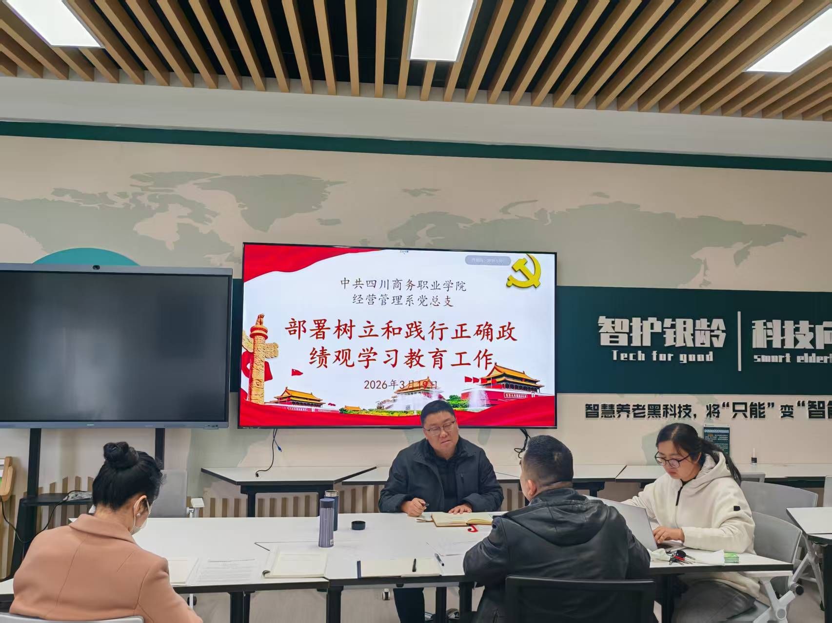 3月19日上午,经营管理系党总支在实训208召开树立和践行正确政绩观学习教育部署动员会。会议由系组织员李济民同志主持,系党总支委全体党员参加。
