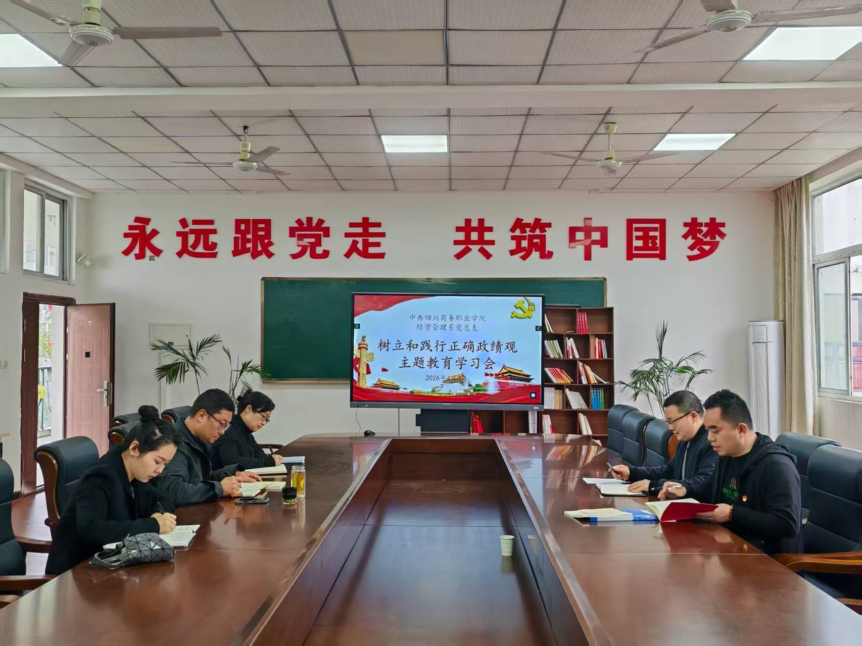 返校后,系党总支在6304党员活动室召开正确政绩观主题教育学习会,党总支书记杨洪领学《习近平关于树立和践行正确政绩观论述摘编》中《为民造福是最大政绩》相关章节,支委成员结合上午祭扫参观感悟,立足教学、管理、学生服务等本职岗位,围绕“干事创业求实效、出实绩”开展交流研讨。