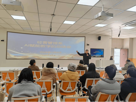 2026年1月6日,经营管理系于5501室召开全系教师大会,总结近期工作,谋划未来发展。会议由系党总支书记杨洪主持。
