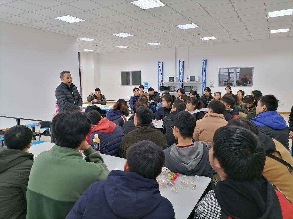 201734名学生在京东物流实习3个月以来。学院为了更好的互动、沟通、收集、掌握实习学生生活、思想、工作、成长等情况,2019年11月27日学院经营管理系梁栋主任一行4人到京东青白江物流基地公司宋忆航经理实习学生共同举办了本次实习生座谈会。