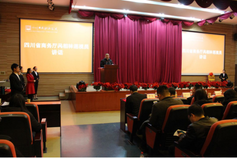 眉山市三人行创业服务有限公司董事长唐磊致辞,向各位领导、嘉宾介绍公司及校企合作有关情况。