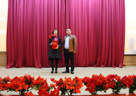 眉山市甄新鲜电子商务有限公司副总经理黎磊向KY开元集团官网电子商务专业教师严珩颁发兼职聘书。